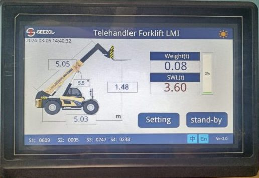 伸缩臂叉车力矩限制是伸缩臂叉车,叉装车设计的重要安全装置。 主要由以下部分组成: 传感器组装:包括用于检测伸缩臂角度的角度传感器;用于感测液压系统压力的压力传感器等。这些传感器可以实时收集相关数据。 数据处理单元:分析、计算和处理来自传感器的数据,以确定当前扭矩状态是否在安全范围内。 显示和报警单元:通过显示屏向操作员直观显示相关信息,例如当前扭矩值、负载情况等,当出现异常情况时,会发出视听报警信号,提醒操作员注意。 其工作原理是基于对伸缩臂角度、负载压力等数据的监测和计算。通过这些数据确定当前的扭矩大小,一旦扭矩超过设定的安全极限,扭矩限制器就会采取相应的措施,例如限制动作、报警等,避免发生超载等导致车辆侧翻或其他危险事故的情况。 超臂叉车负载扭矩指示器大大提高了伸缩叉车操作的安全性和可靠性,确保操作员的生命安全和设备的正常运行,是超臂叉车不可或缺的组成部分。